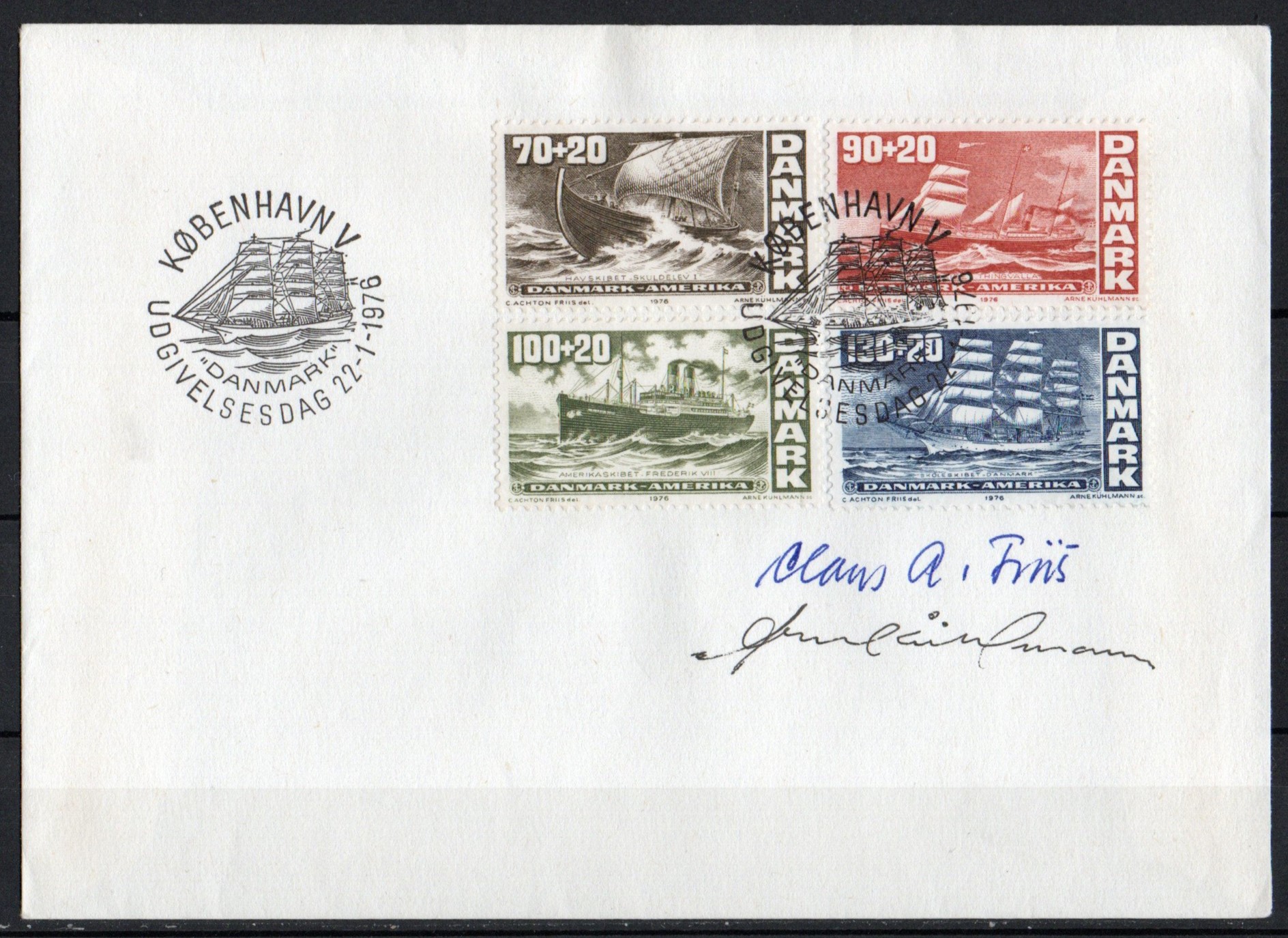 Signeret af gravøren Arne Kühlmann og kunstneren Claus Achton Friis.