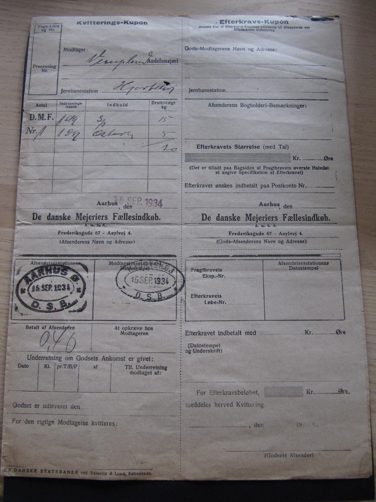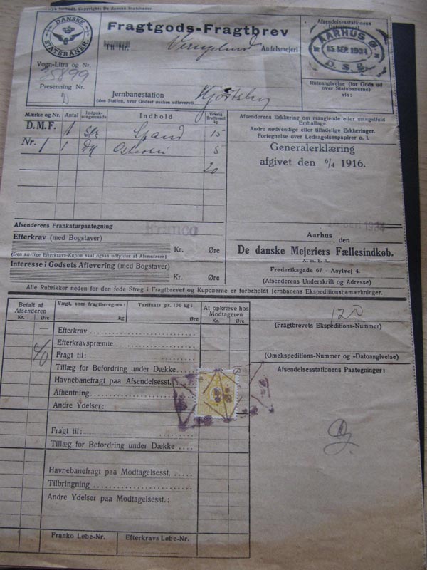 DANMARK FRAGTGODS-FRAGTBREV (DSB MÆRKER PÅ )