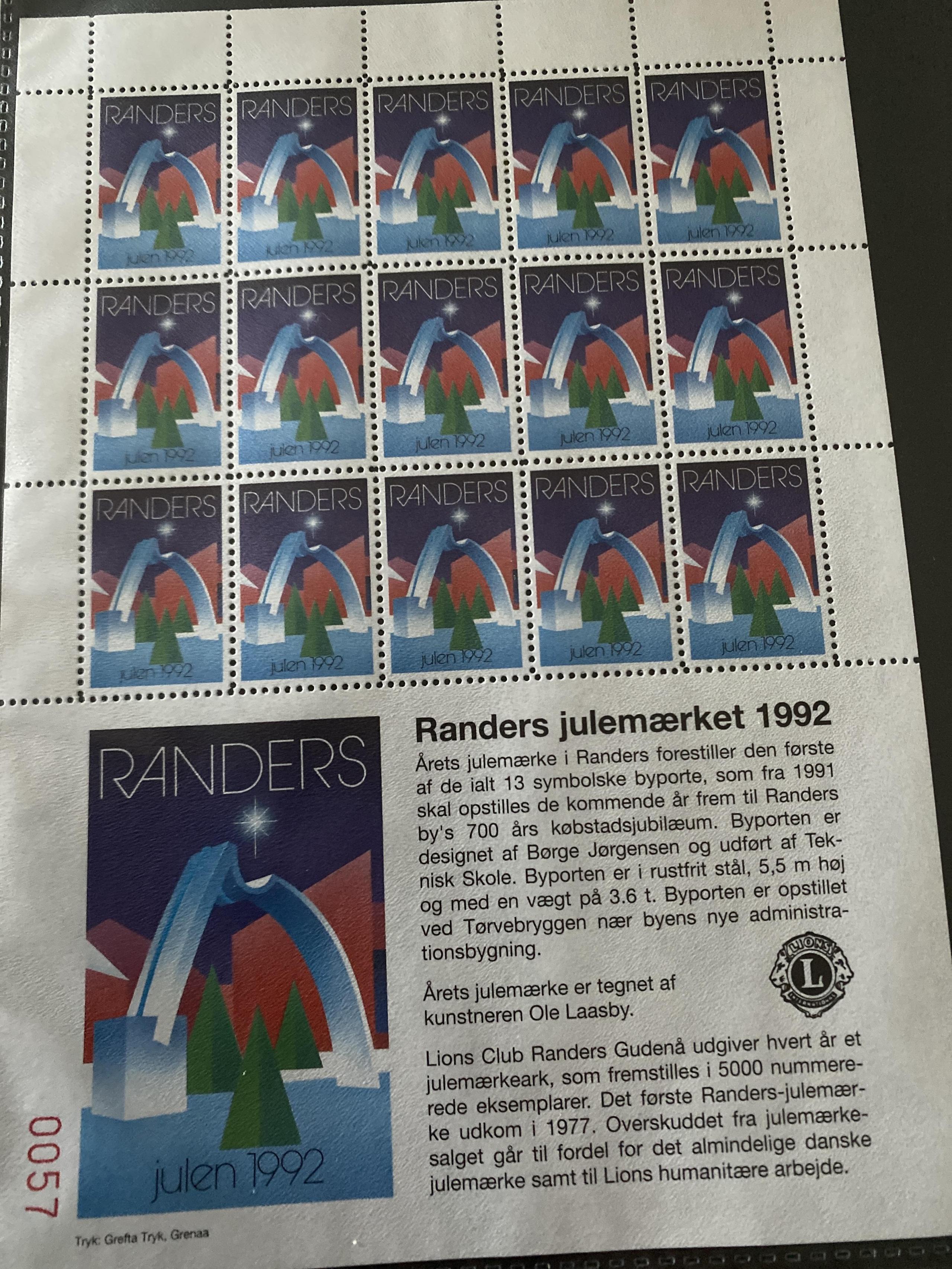 DANMARK JULEARK FRA RANDERS 1992 UFOLDT