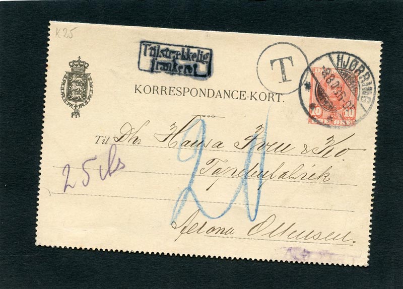 (L5136) Korrespondance-kort 10 øre stemplet utilstrækkelig frankeret se foto