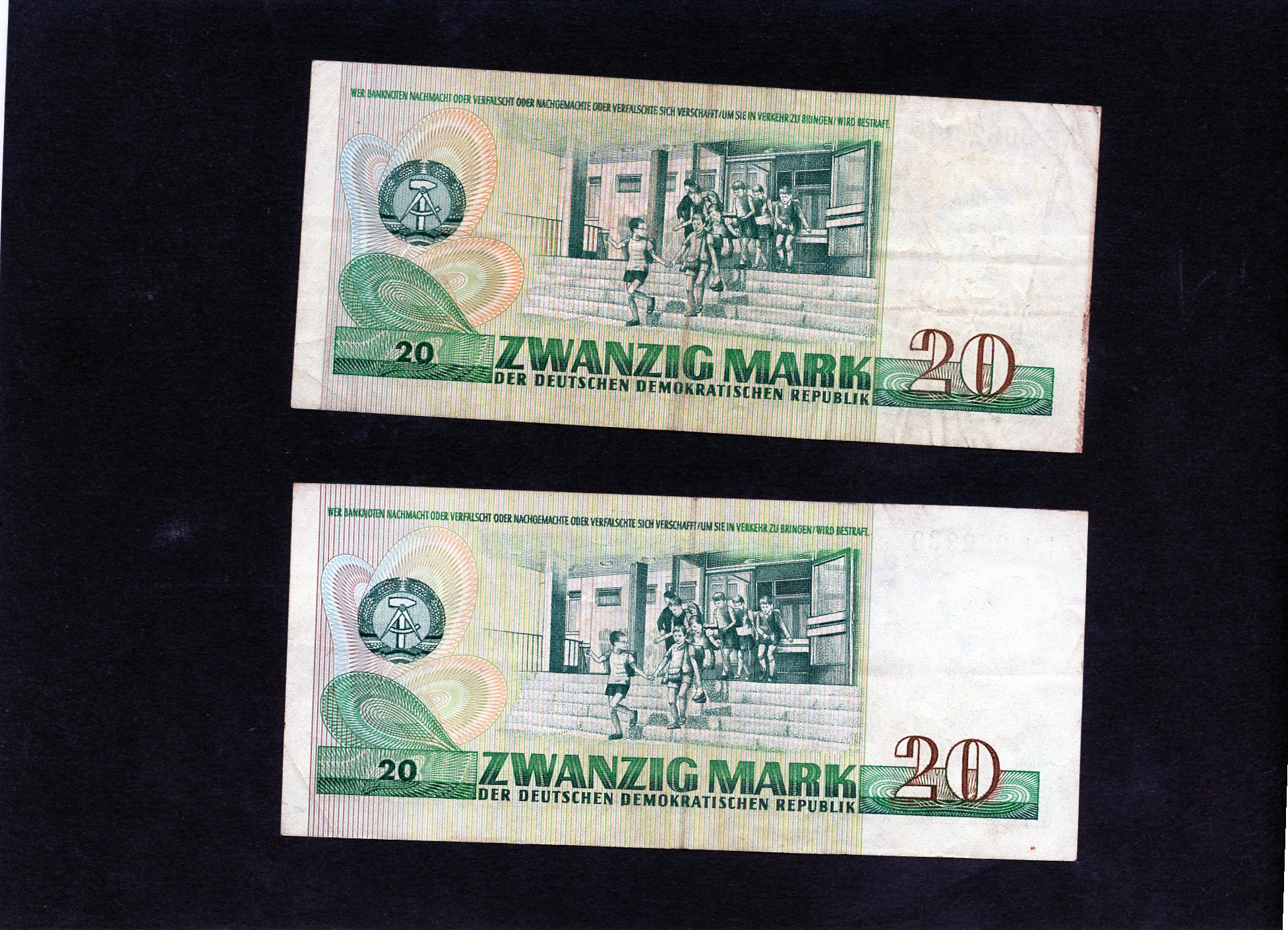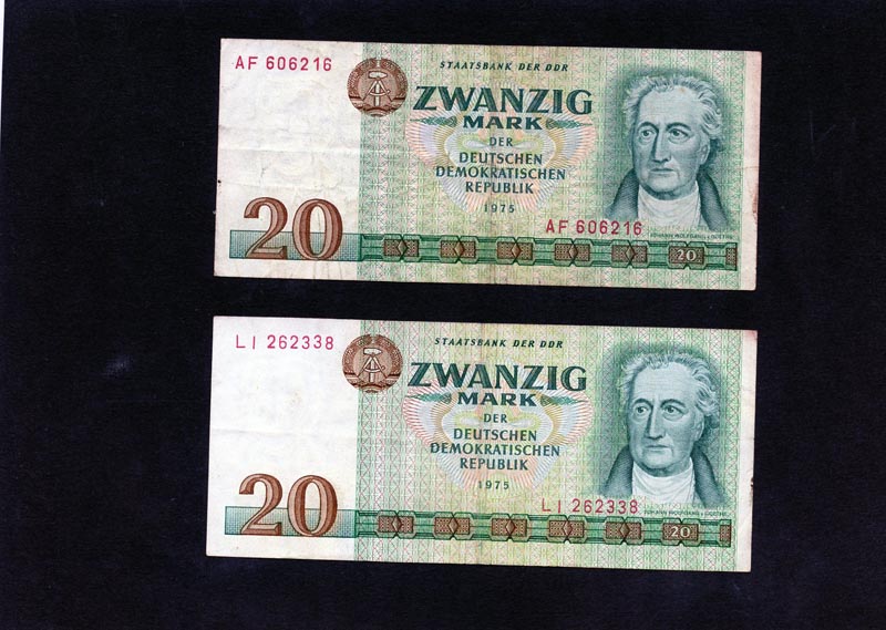 (P105) DDR 2 stk 20 mark. seddel se foto